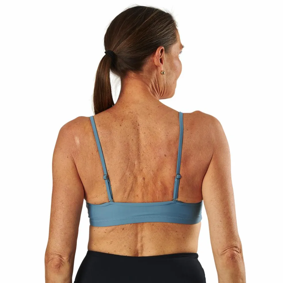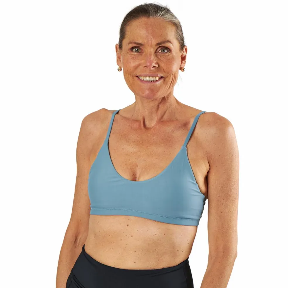 Bikinitop med sportig look från Waikani Beachwear. Fint bågformad urringning och avtagbara axelband så de även går att haka fast i kors baktill. Bikinitoppen är i kuplös modell. Material: 85% polyester, 15% elastan.