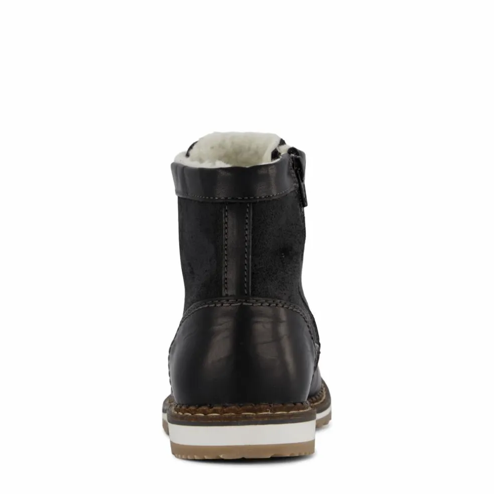 Varmfodrad snörstövel med ovandel i läder och mocka samt dragkedja på insidan