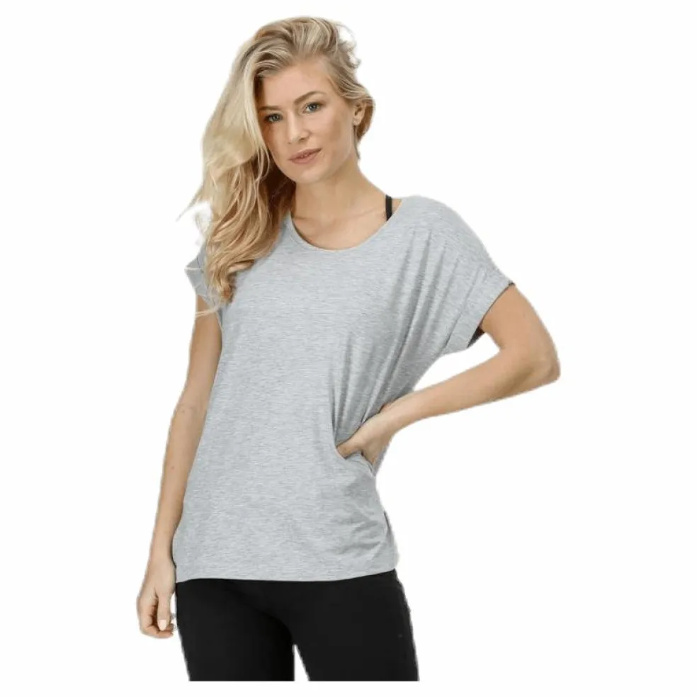 Kortärmad topp i stretchigt material och lös passform. Rund halsringning och uppvikta ärmslut. Längd 65 cm i storlek M. 75% Viskos 20% Polyester 5% Elastan.
