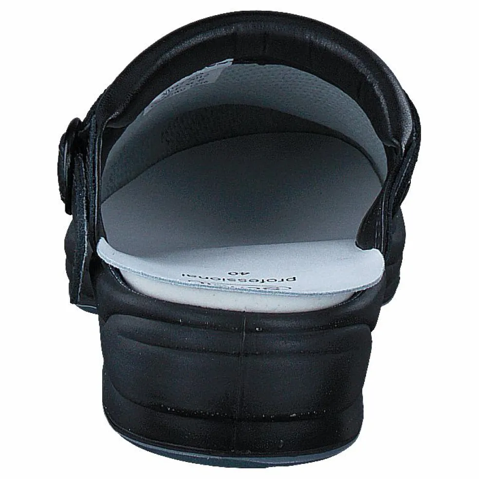 Slitstark arbetssandal på hög Adaptabotten. Två remmar med justerbara spännen. Ger ett högt fotledsstöd och bra misslyckande. Avlastar foten. ger en bättre hållning och förhindrar pronation. Ovandel i läder/nubuck med textilfoder för att motverka missfärgning på strumpor. Innersula i läder/mocka. Tål långa arbetspass på hårda golv.