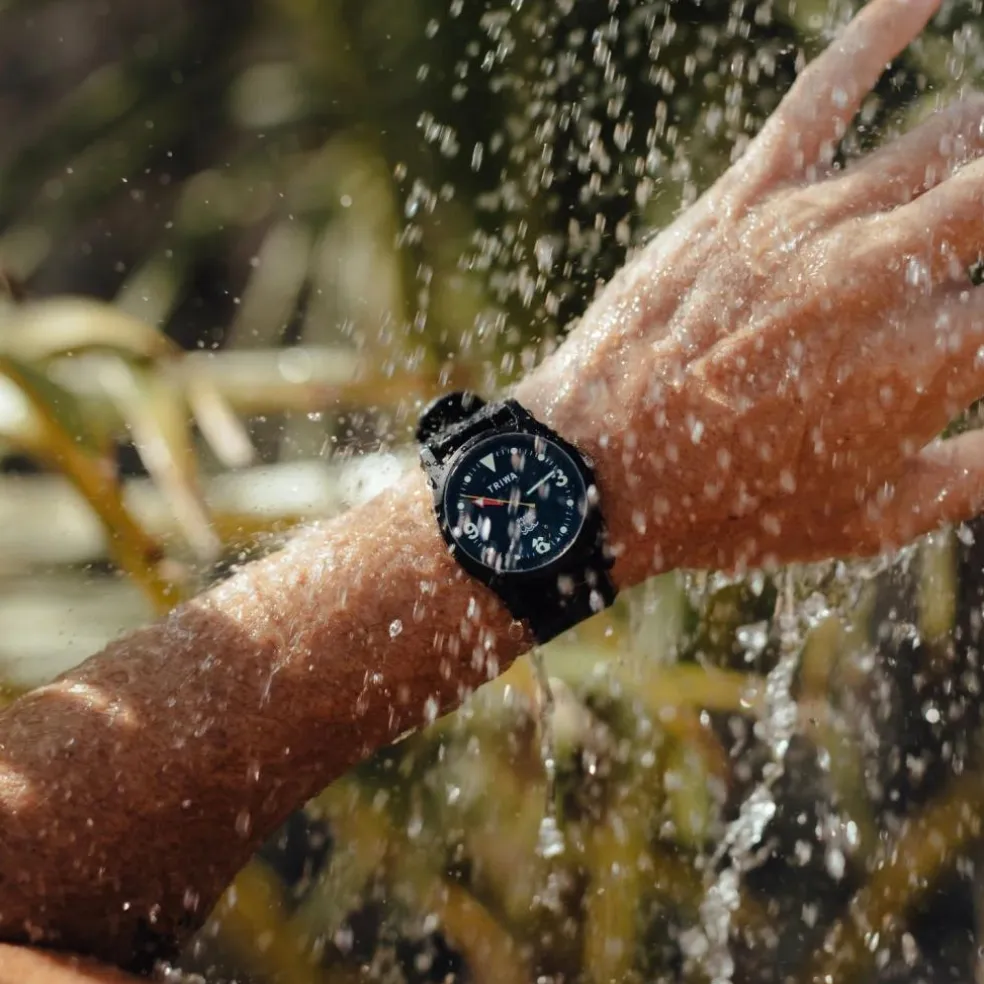 Klockan har ett pålitligt japanskt kvartsurverk och är vattentålig upp till 10 ATM, vilket gör den till ett utmärkt val för alla äventyr. Dessutom stöder du med varje köp #tide’s ansträngningar att förbättra och skydda våra hav. Gå med i rörelsen och gör skillnad med Time for Oceans-klockan.