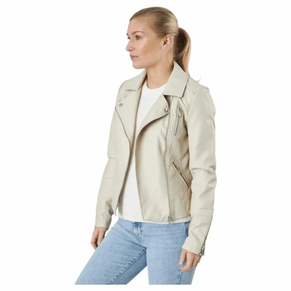 Hela utseendet, utan någon skuld. ONLGEMMA FAUX LEATHER BIK är gjord av viskos-polyuretanbelagt tyg och 100 % PU-läder, och erbjuder det lyxiga utseendet hos andra konstläderjackor utan att vara oöverkomligt dyra. Tyget är mjukt och andas, vilket gör det perfekt för en dag på kontoret eller en utekväll.