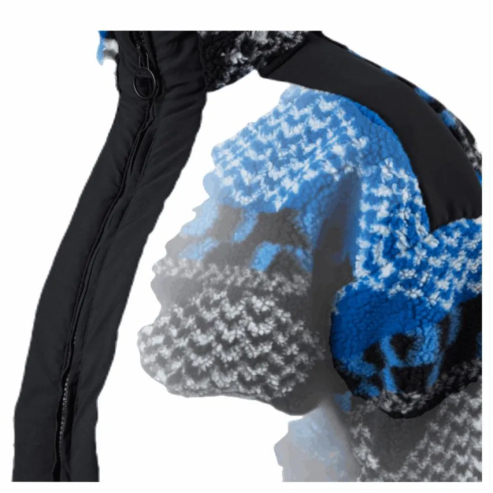 Oemotståndligt mjuk och kraftig tröja i tjock pile med fleecekänsla. Den har fickor som gör att den även kan fungera som jacka när det är lite varmare ute. Iögonfallande mönster som balanseras av svarta, vävda paneler som ger hållbarhet.