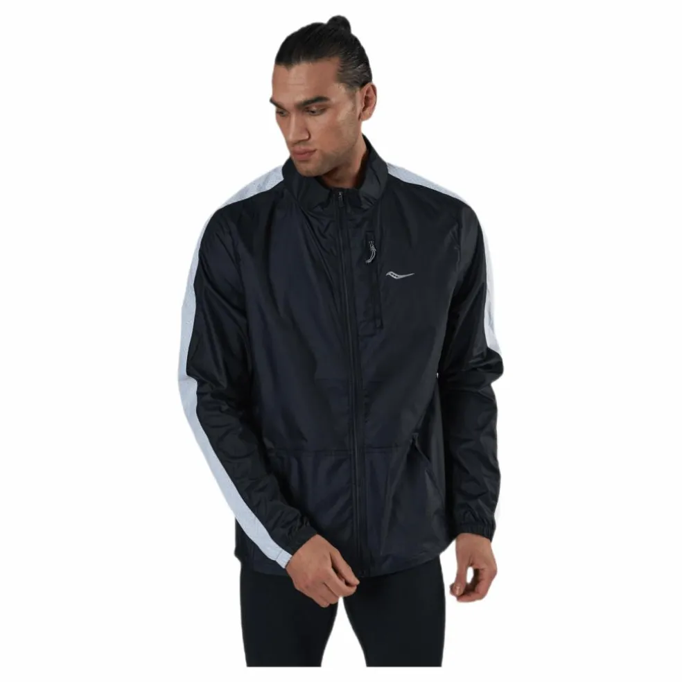 Packaway Jacket från Saucony är en lätt och vattenavvisande jacka gjord av ett mjukt tyg som andas. Det är perfekt för dem som vill vara bekväma under sina utomhusäventyr. Jackan har en lätt design och har vindtäta egenskaper för att hålla dig varm under kyliga dagar. Den har reflekterande accenter som gör dig mer synlig och kommer med en packaway huva.
