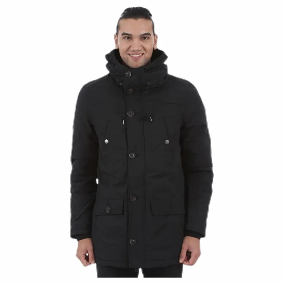 Varm parka med rejäl luva och hög krage, perfekt för kalla vinterdagar. Två framfickor med fleecefoder där kalla händer snabbt tinas upp. Dragsko i midjan som går att dra åt för en mer figurnära passform och tvåvägsdragkedja för värmereglering. Vinklade bröstfickor och innerficka med tryckknapp. Ribbad mudd i ärmöppningen som stänger ute kylan. Yttertyg med vattenavvisande coating. Fri från PFOA, PFOS och flourcarboner. Material: Yttertyg: 69% bomull, 31% polyamid. Foder: 100% polyester, Fyllning: 80% ankdun, 20% fjäder
