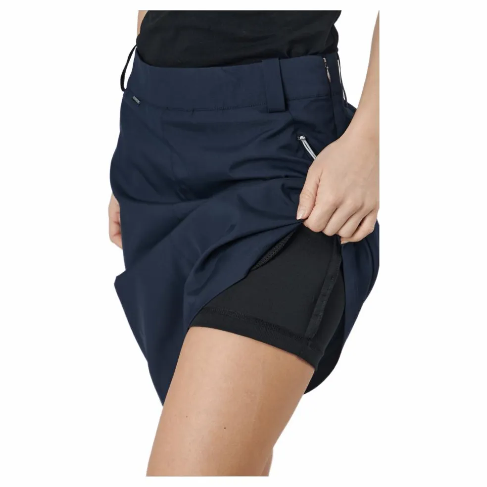 Skaterkjolen från Didriksons är det trendigaste plagget du hittar den här säsongen. I ett supersmickrande snitt med lite längre rygg, har den en slits framtill med en dold dragkedja. Den har även ett elastiskt midjeband med dragsko för anpassning till din perfekta passform och två sidfickor. Bär den med en enkel topp och sneakers eller klackar, beroende på tillfälle.