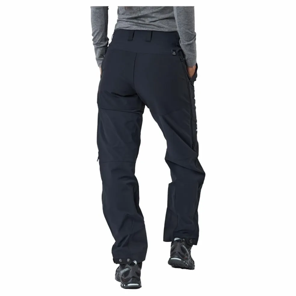 Haglöfs Rugged Relaxed Pant Women är ett par byxor designade för utomhusbruk. De har ett elastiskt midjeband och en elastisk mudd i botten.