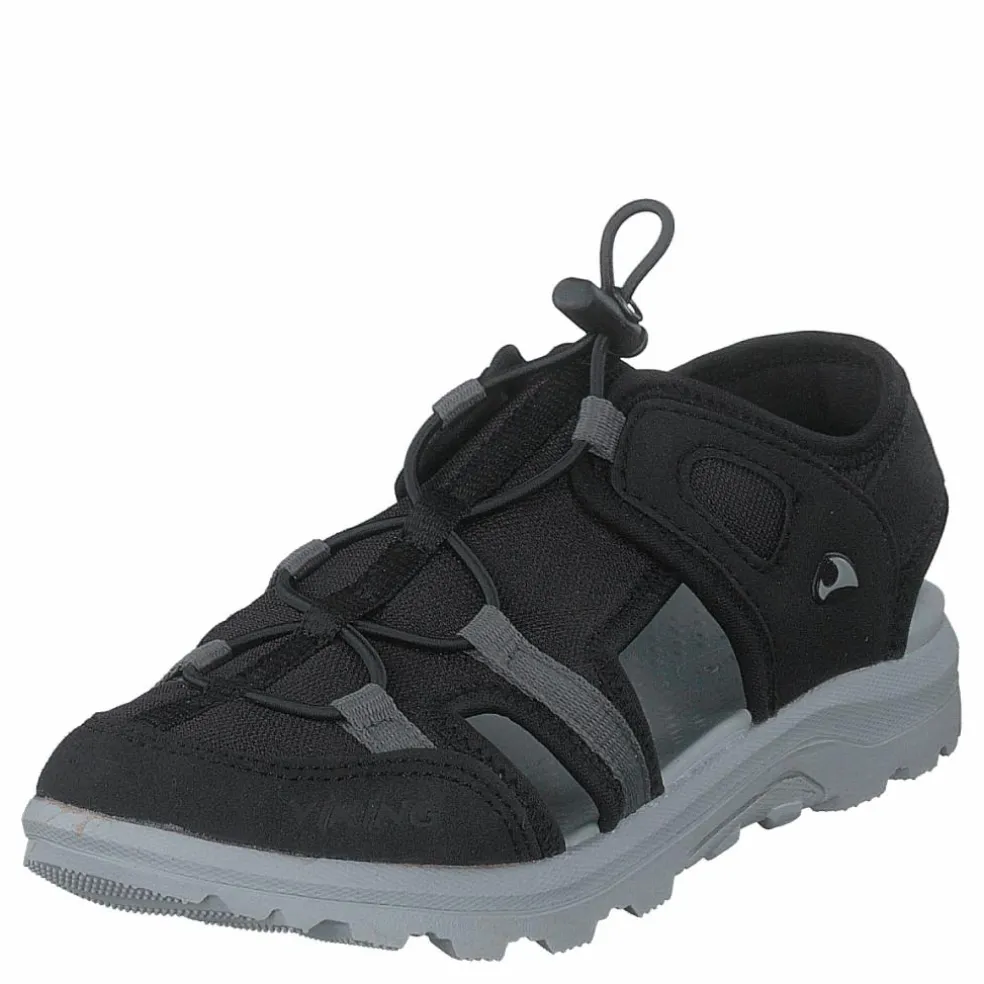 En skyddande, saltvattenbeständig sandal för aktiv lek – Sandvika är ett utmärkt val för stranden och utanför. Tillverkad av mjuka och andningsbara material för ventilation under varma sommardagar, denna sandal har en stängd tå design som ger utmärkt skydd för små fötter. Alla material är saltvattenbeständiga och snabbsnören säkrar bästa passform och överlägsen komfort. Yttersulan är gjord av naturgummi med stora klackar för bra grepp på stockar eller lösa föremål. Sandvika ger sommarnöje, komfort och säkerhet till alla aktiviteter och ytor. Tvättbar i 30 grader. Vi rekommenderar inte att du använder sköljmedel.