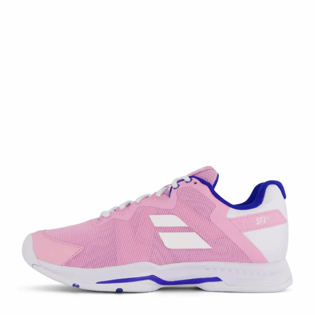 Spela ditt bästa och se bra ut på tennisbanan med Babolat Sfx3 All Court-skor i en snygg rosa design. Dessa skor erbjuder både komfort och stöd, vilket gör att du kan röra dig tryggt och leverera kraftfulla portioner samtidigt som du lägger till en livlig och energisk touch till din tennisklädsel.