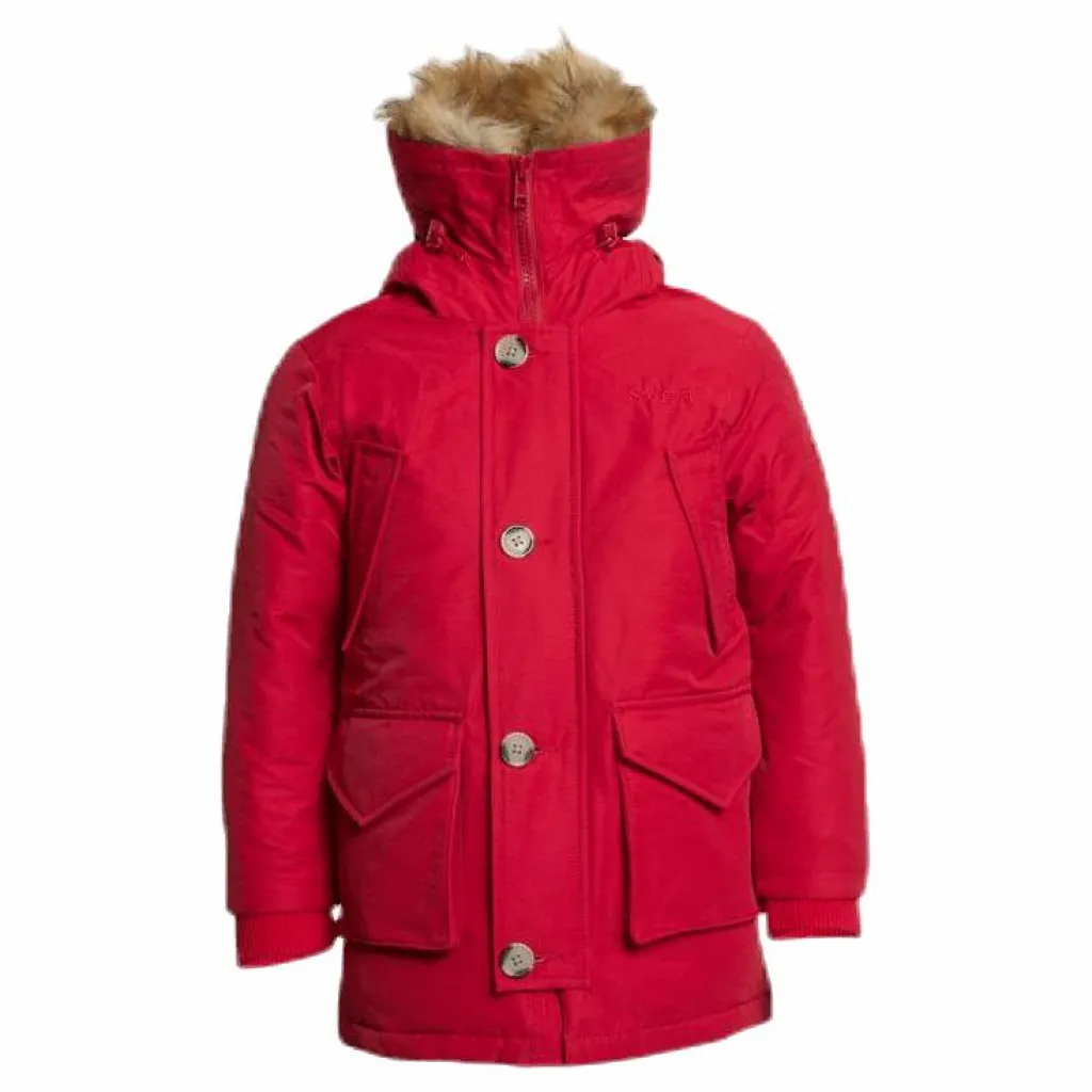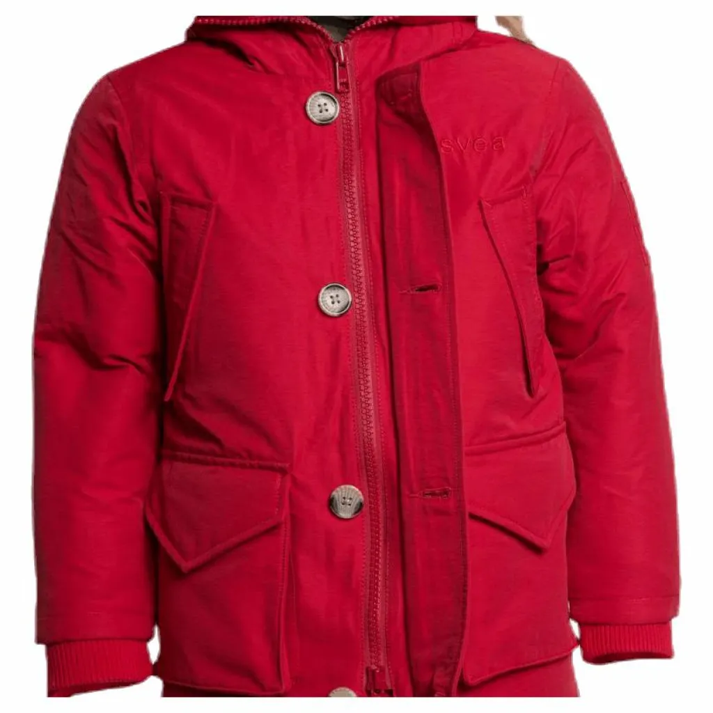 Smith Jr Jacket är en klassiker. En genomarbetad parkas i nylon och bomull, fylld med skön dunstoppning. Smith har en skön fodrad huva med luva i pälsimitation. Till skillnad från Miss Smith är denna modell rak och inte figursydd, vilket gör att den kan bäras av såväl tjej som kille. Broderad svealogga på vänstra bröstet samt Sveas flaggbadge i multicolor på vänster ärm.