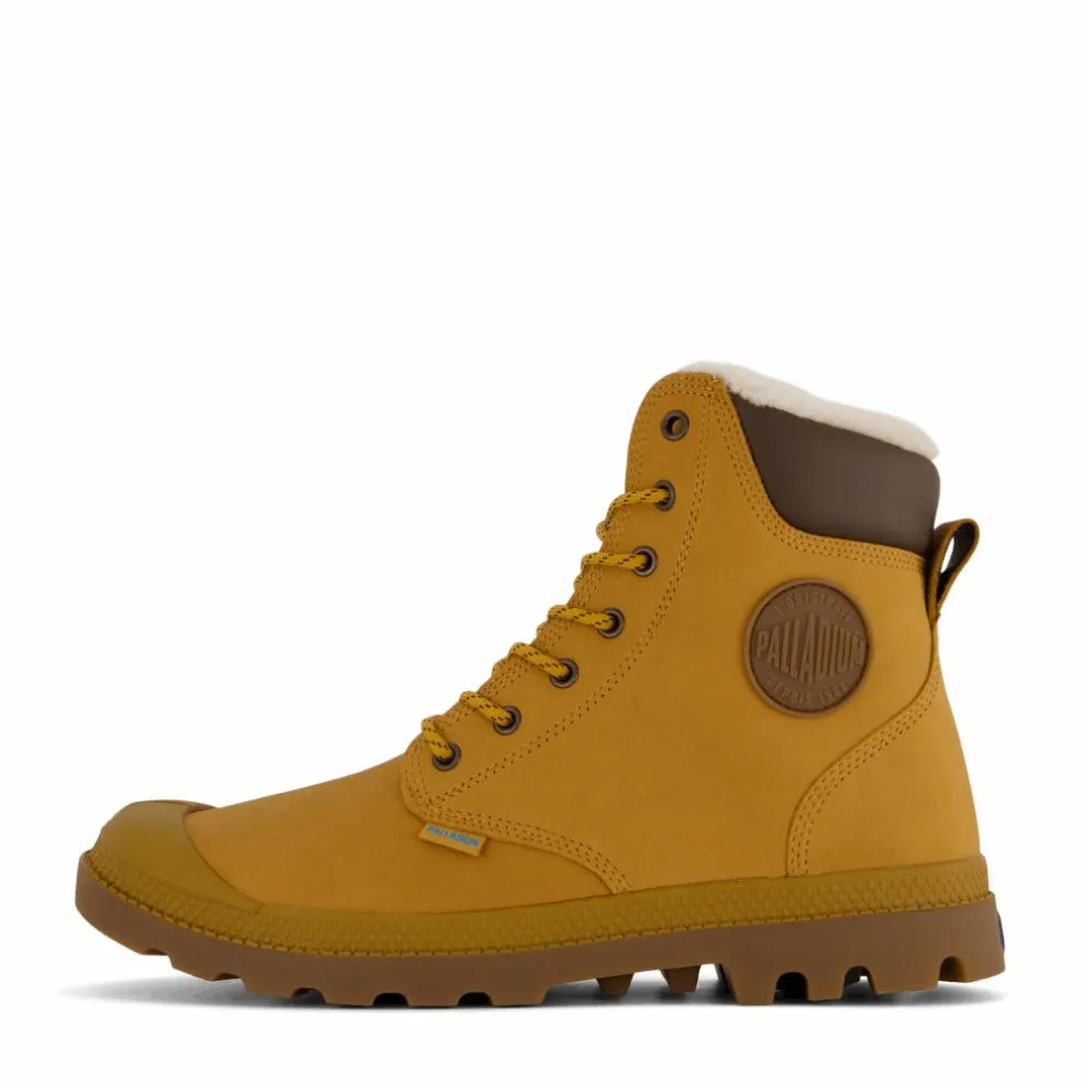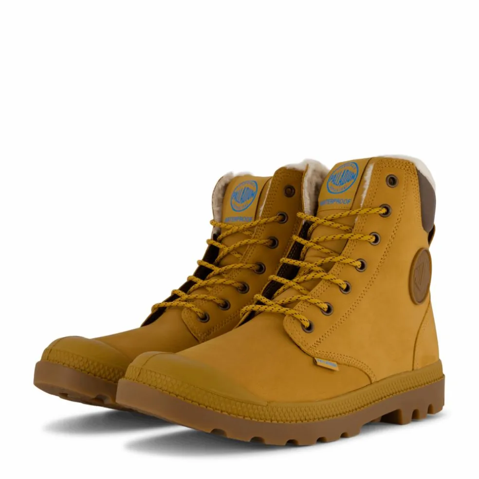Kliv in i äventyret med Palladium Sport Cuff Wps-stövlar i en djärv Amber Gold-ton. Dessa stövlar är redo att ta sig an vilken terräng som helst, oavsett om du vandrar genom vildmarken eller navigerar i den urbana djungeln. Den robusta gummisulan ger utmärkt grepp, vilket säkerställer att du inte glider upp även om du är utsatt för klumpiga stunder.Den vattentäta ovandelen håller dina fötter torra under oväntade regnskurar eller när du av misstag kliver i en pöl medan du beundrar landskapet. Dessutom erbjuder den vadderade kragen och plös extra komfort, så att du kan fokusera på din resa utan att dina fötter protesterar.Men låt oss vara verkliga, det bästa med dessa stövlar är deras obestridliga stil. Den rika bärnstensguldfärgen kommer säkerligen att göra dig avundsjuk på alla dina äventyrssökande vänner. Så varsågod, snöra på dig dessa dåliga pojkar och visa världen vad du är gjord av. Med Palladium Sport Cuff Wps-stövlar är du redo för allt – utom kanske ett möte med björnen. Men hey, du kommer åtminstone se bra ut när du springer iväg!