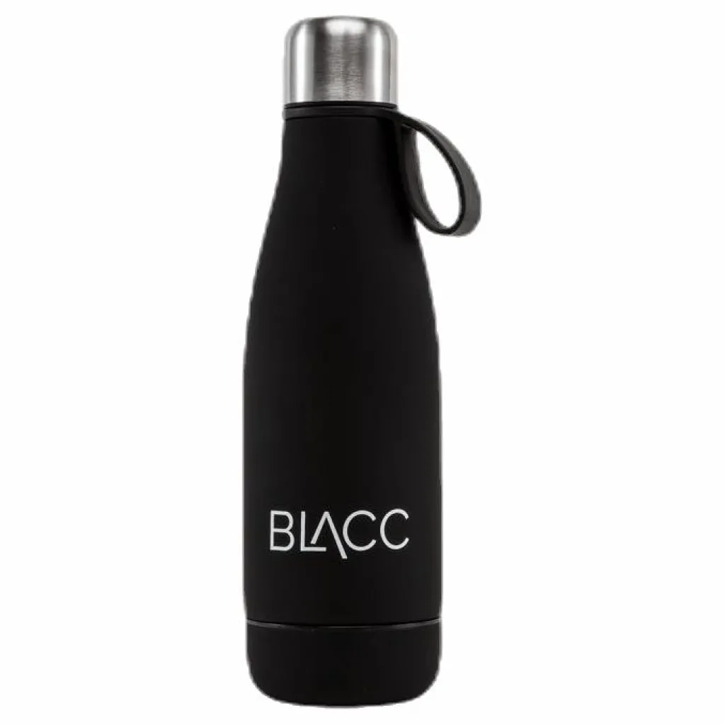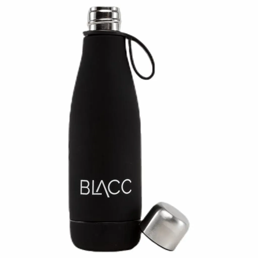 Flaska från BLACC som är lika praktisk som snygg. Håller temperaturen för både varma och drycker, vilket gör flaskan perfekt för alla tillfällen. Material: Stål med silikonbeklädnad och hake.