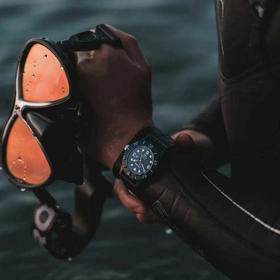 Triwas dykarklocka tillverkad helt av återvunnen havsplast. Vi kallar den Ocean Plastic SUB som en hyllning till de tidiga undervattensforskarna.