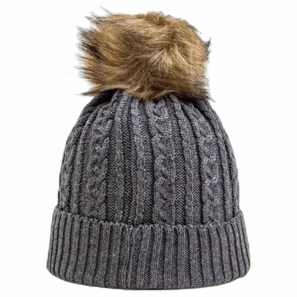 Lindbergs stickade mössa i 50% ull, 50% akryl. Syntetisk pälsboll. Bomullsfoder.