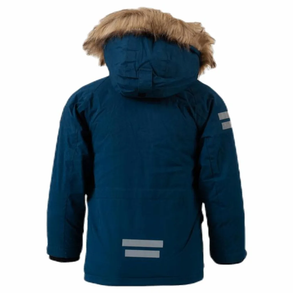 Lindbergparkas som är tillverkad i bomullsblandad nylon. Tyget är vattentätt 5.000 mm (ej tejpade sömmar). Jackan har en mjuk stoppning och är fleecefodrad i ryggen. Huvan är justerbar och avtagbar med en fuskpälskant. Två sidofickor och två fakefickor på bröstet. Flourkarbonfri.
