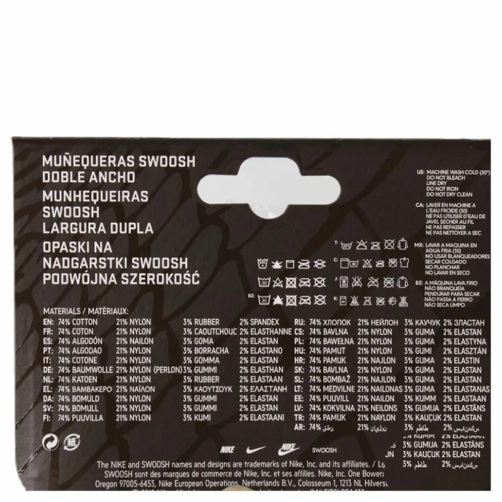 Lite mer svettband för pengarna. Dessa svettband säljs i par och de kommer hjälpa dig att hålla dig torr och fräsch under träningspassen. De är dubbelt så stora som de klassiska svettbanden men de har fortfarande kvar den klassiska Nike-swooshen. 14 centimeter långt och tillverkat i 74 % bomull / 21 nylon / 3 % gummi / 2 % elastan.