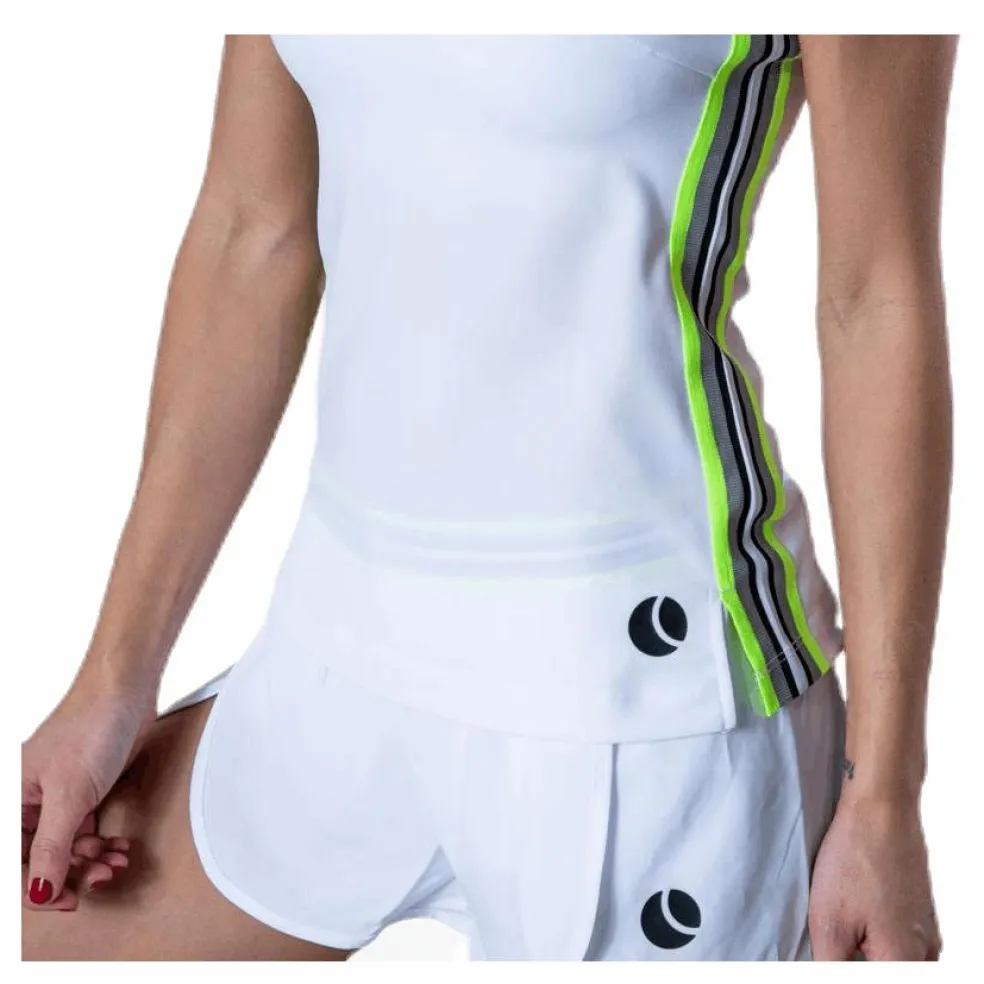 Den nära passformen till trots är rörelsefriheten stor i Tala Tank. Performance toppen är tillverkad i följsam polyester och elastan med slitsar i midjan. Det flerfärgade bandet på sidorna och tennisboll-logo nertill är designdetaljer. Välj mellan navy, vit eller den starkt lysande gula.