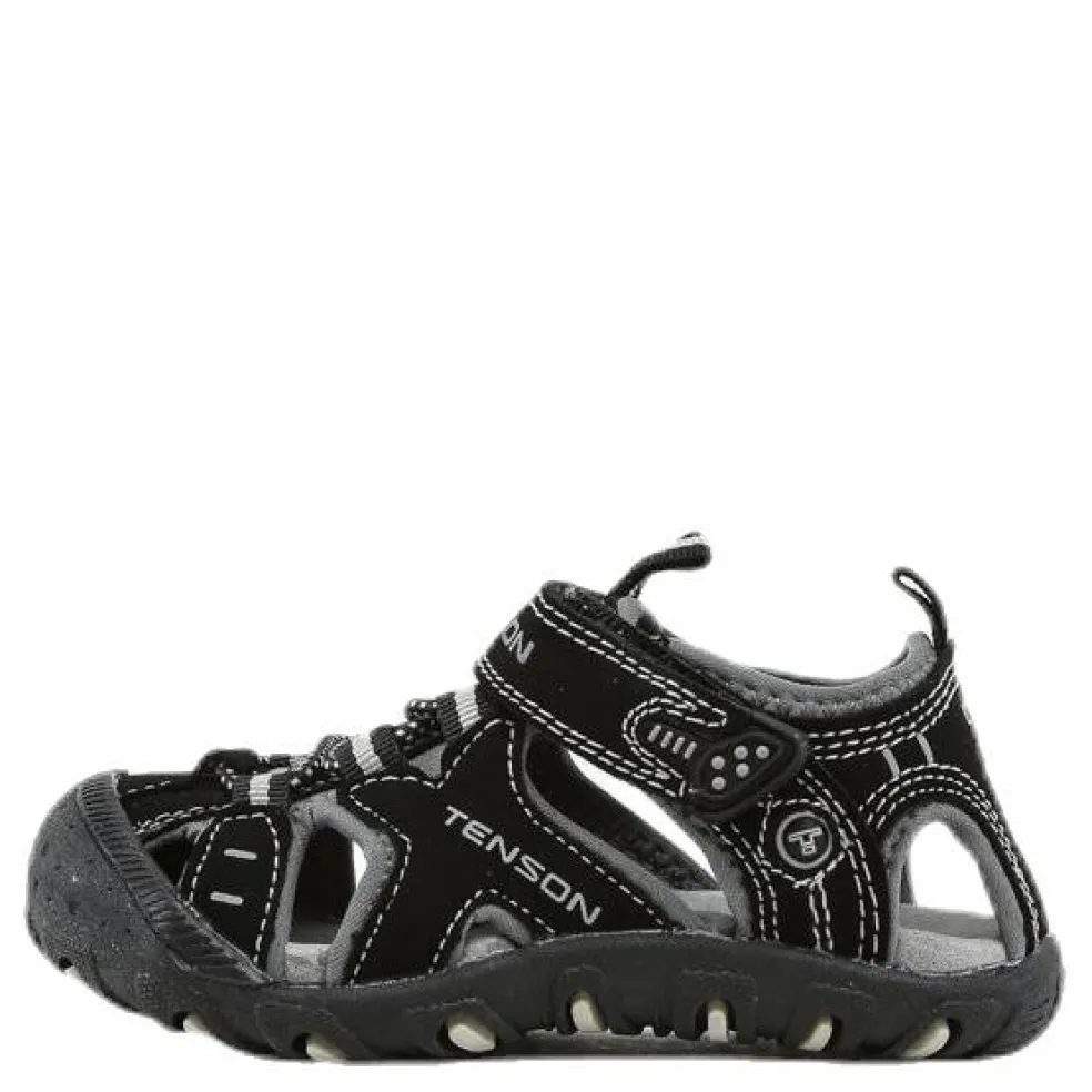 Juniorsandal med justerbart kardborrelås, anatomiskt formad innersula och gummiklädd tåförstärkning. Yttersula: TPR gummi.