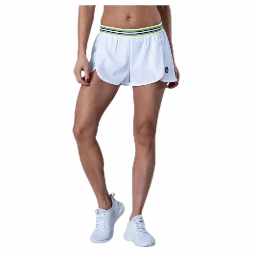 Det är svårt att inte lägga märke till Tine Shorts tack vare flera dekordetaljer i neon. Men när du bär dem kommer du uppskatta dem för den sköna passformen och det mjuka materialet av polyester och elastan. För en perfekt och säker passform finns slitsar i sidorna och en mjuk innerbyxa. Välj mellan navy eller vit, båda med tennisboll-logo nederkant.