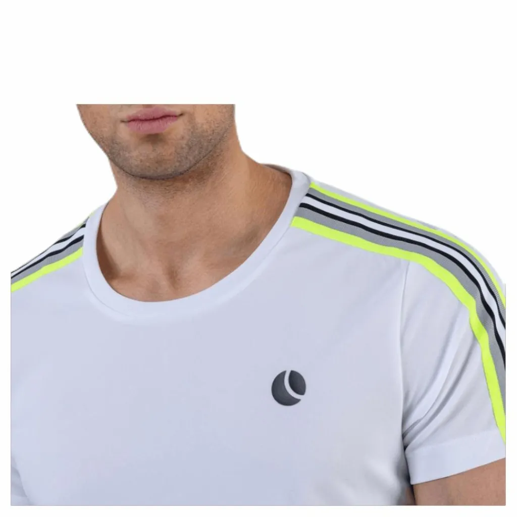 Kom in i matchen med Björn Borg Tomlin Tee. Performance t-shirten i 100% polyester som ser till att du håller dig fräsch hela matchen. Med detaljer som rand på axlar och tennisboll-logo på bröstet.