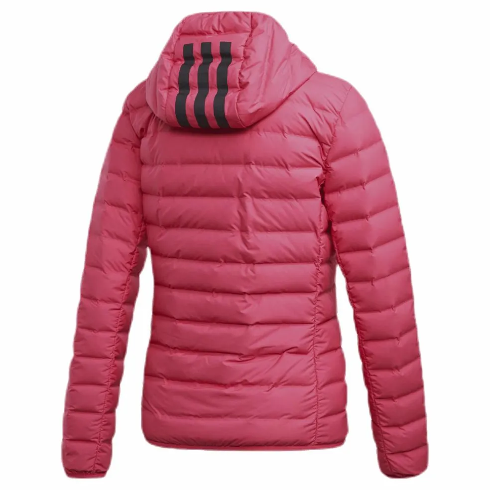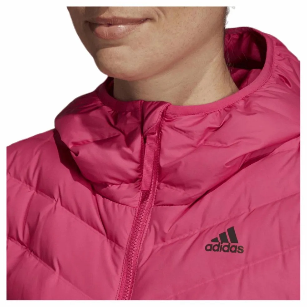 adidas Conextbaffles vind- och vattenavvisande dunkonstruktion; PFC-fri vattenavvisande yta; Elastiska kantband på huva och muddar