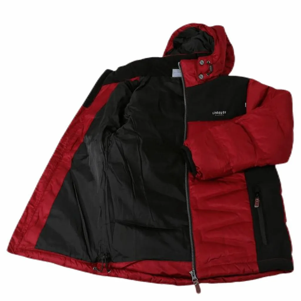 Lindbergjacka med lätt stoppning som ger en ”dunkänsla”. En snygg kombination av polyestersoftshell och nylon med sydda kanaler på baksida och ärmar, pressade sömmar fram. Jackan är vattenavvisande och har avtagbar och justerbar huva. Sidorfickor med dragkedja. Jackan är justerbar nertill med dragsko. Flourkarbonfri ytbehandling.