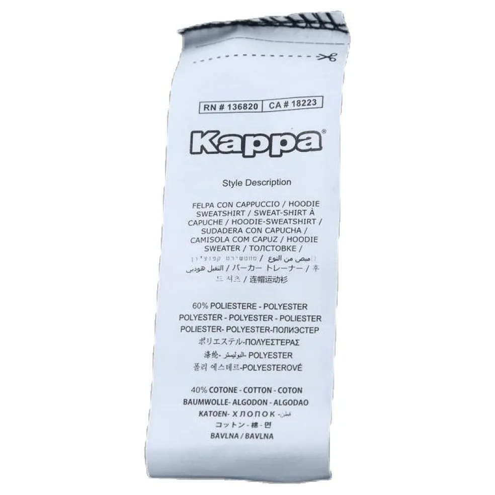 Mjuk och behaglig unisex sweat hood från Italienska varumärket Kappa. Kängruficka på magen och resår i midja och ärmslut. liten logo broderat på bröst
